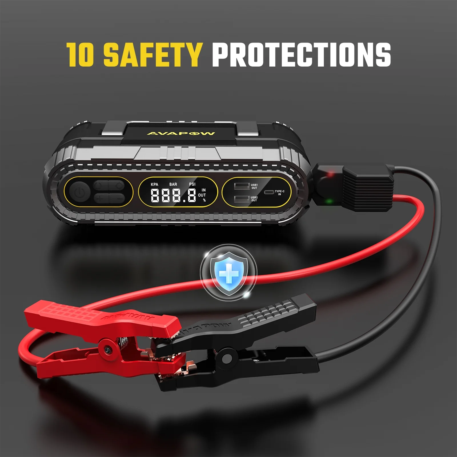 - Powerful Jump Starter: Features 2000A peak current and 16000mAh capacity, capable of starting 12V vehicles up to 8.0L Gas/6.0L Diesel engines, even in extreme temperatures (-4F to 140F).