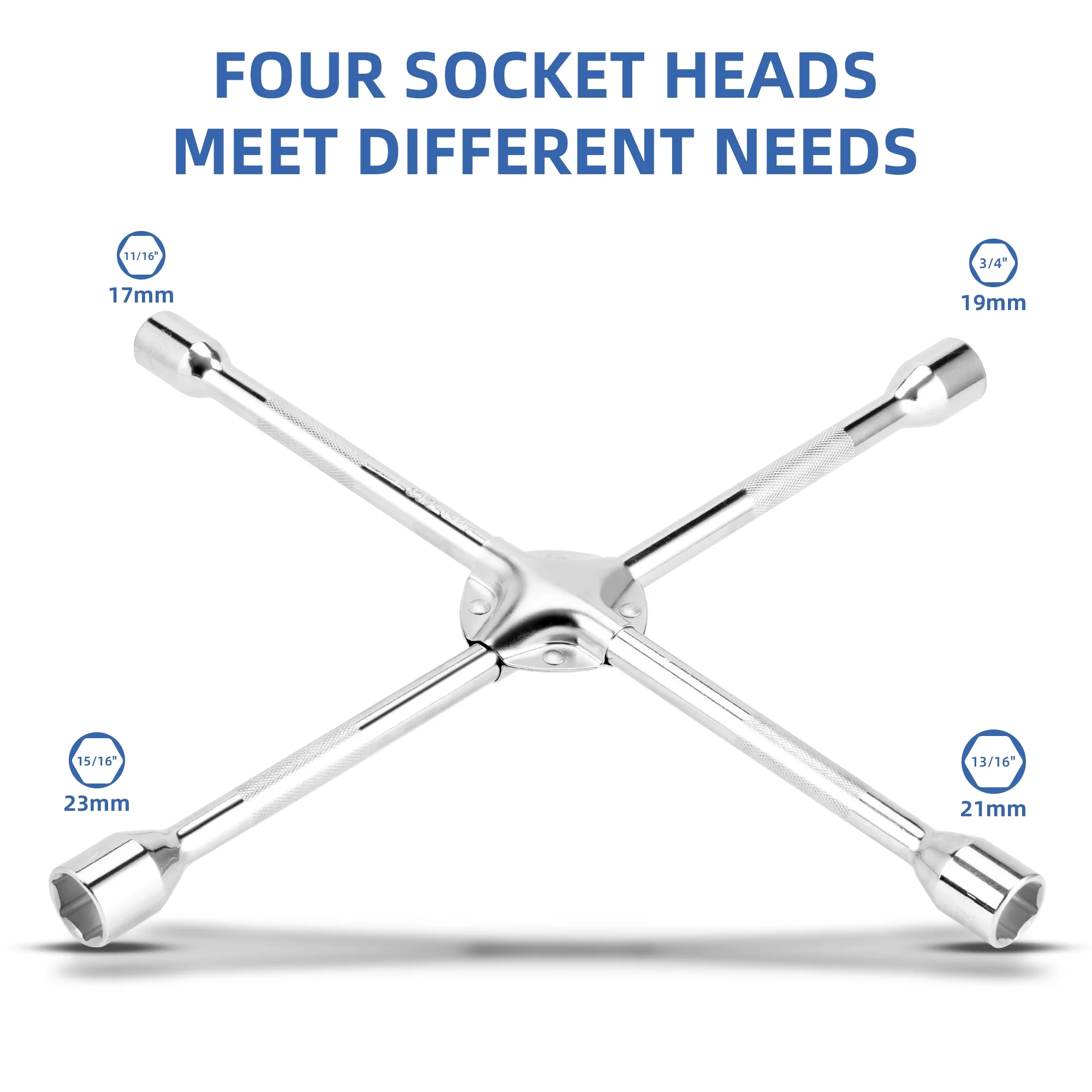 Multiple Sizes: Includes four lug sizes: 17mm (11/16″), 19mm (3/4″), 21mm (13/16″), and 23mm (9/10″) for various applications.