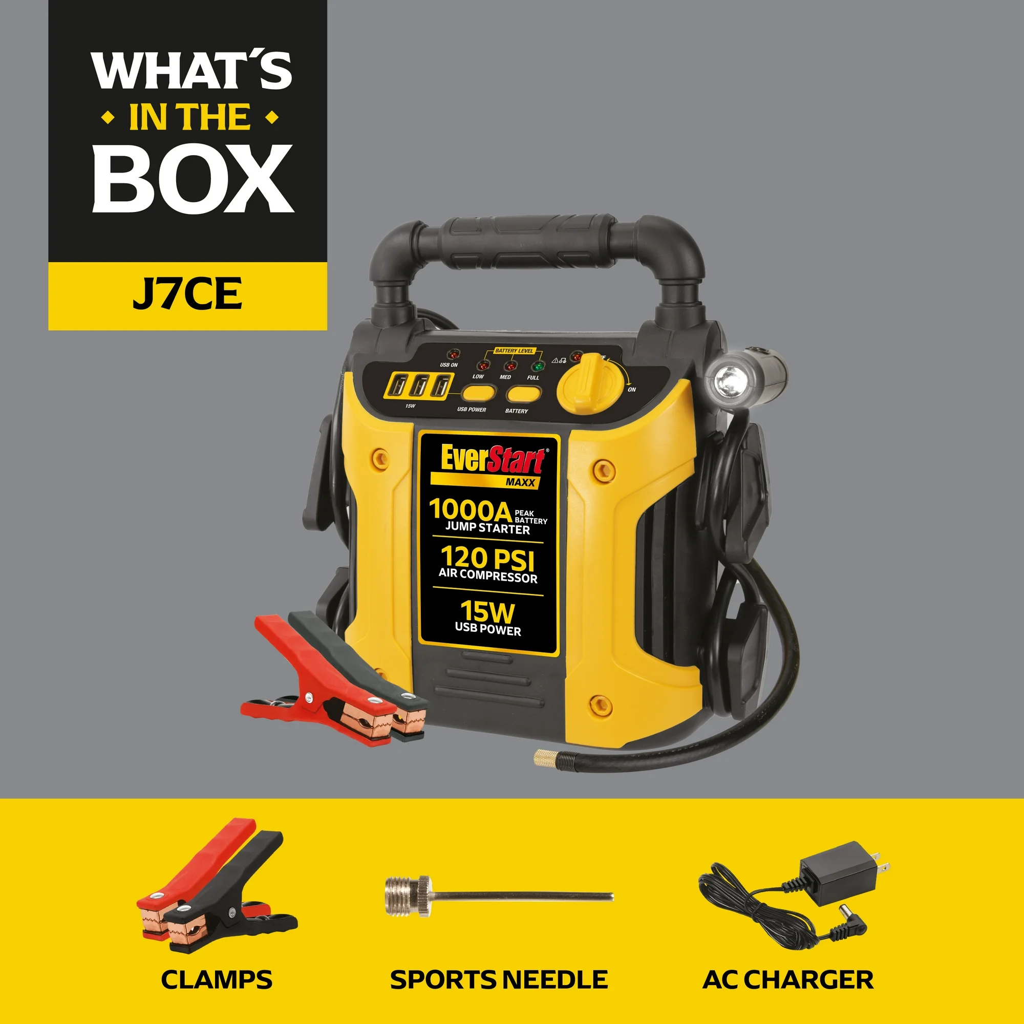 Powerful Jump Starter: Provides 1000 peak amps for jump starting 4- and 6-cylinder engines