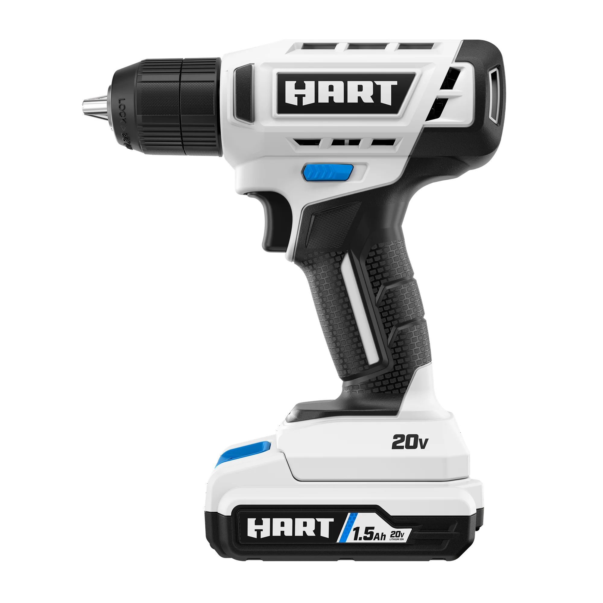 Compact Design: The HART 20V 3/8″ Drill/Driver Kit is 50% more compact than the previous generation, making it ideal for tight spaces.