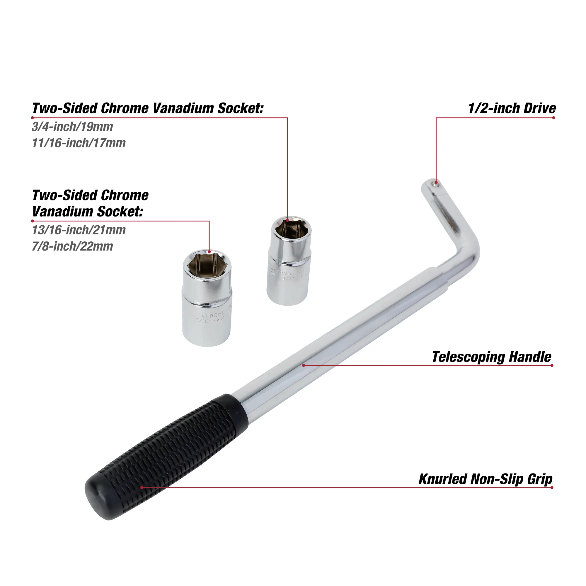 - Universal Sockets: Includes 4 common SAE and Metric socket sizes: 17mm (11/16″), 19mm (3/4″), 21mm (13/16″), 22mm (7/8″)